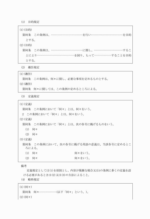 第5条 条例の本則の主なものの規定の形式は、おおむね次のとおりとする。