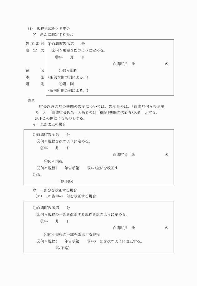 2 規程形式をとる場合の起案の要領、改正の方式及び附則の形式は、条例の例によるものとする。